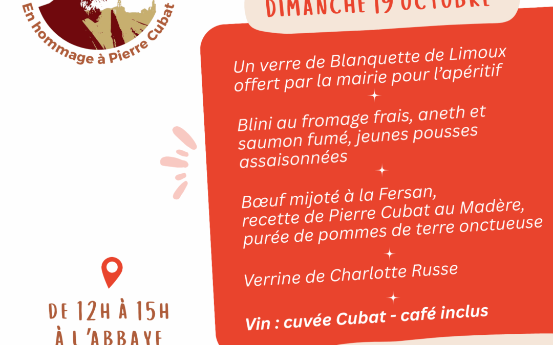 En partenariat avec la mairie, l’association Aleth les 2 clochers vous propose un déjeuner d’exception, le 19 octobre à l’abbaye .